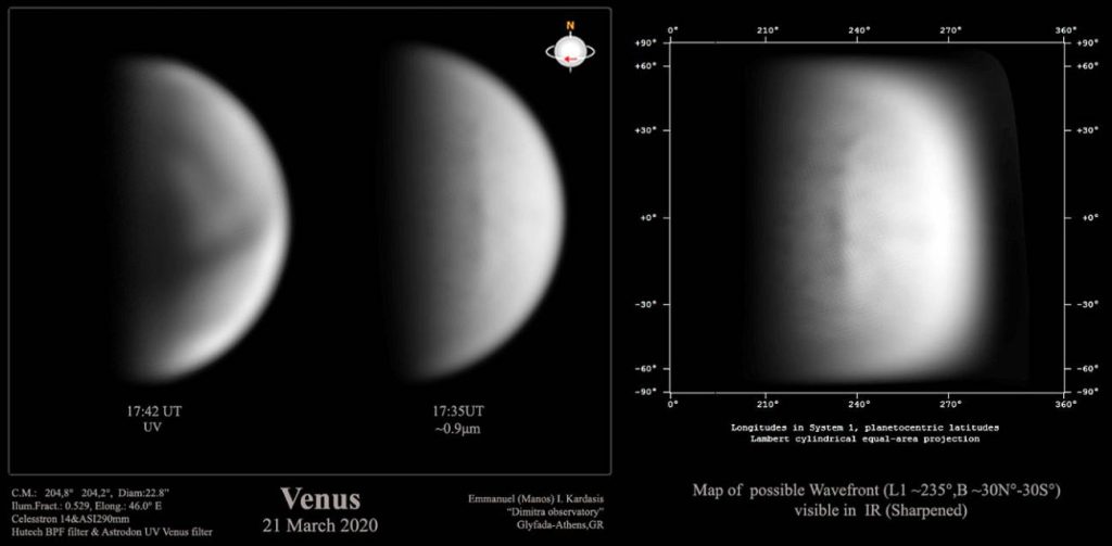 La espesa capa de nubes de Venus impide ver lo que hay debajo, pero una cámara de la sonda Parker ha logrado detectar, no se sabe muy bien cómo, la emisión térmica de su superficie. Además, se ha monitorizado una gigantesca onda atmosférica con la ayuda de astrónomos aficionados y el Telescopio Nazionale Galileo de La Palma ha medido los vientos del planeta.