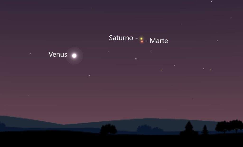 - Magnitudes: Marte +1,0; Saturno +0,9.