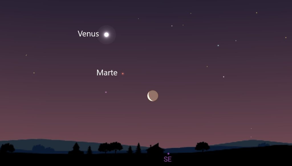 La conjunción de la Luna, Venus y Marte será visible antes del amanecer del 27 de febrero
