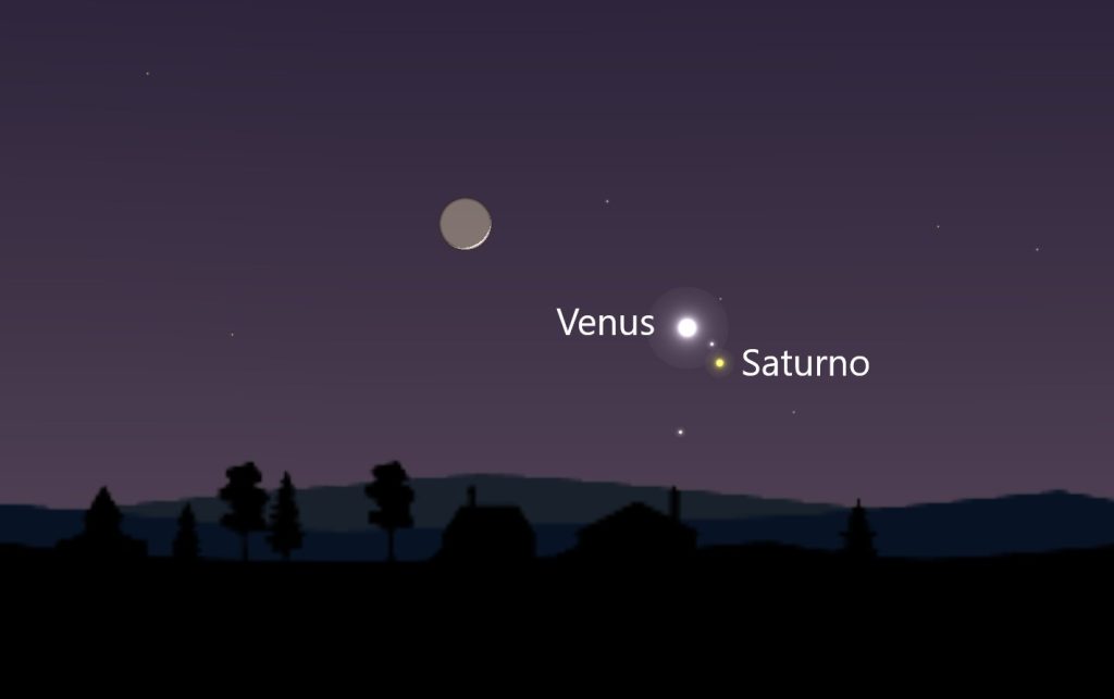 - Magnitudes: Venus -3,9; Saturno +0,8.