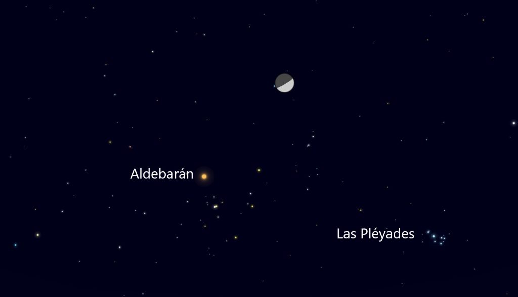 La conjunción de la Luna y la estrella Aldebarán será visible esta noche