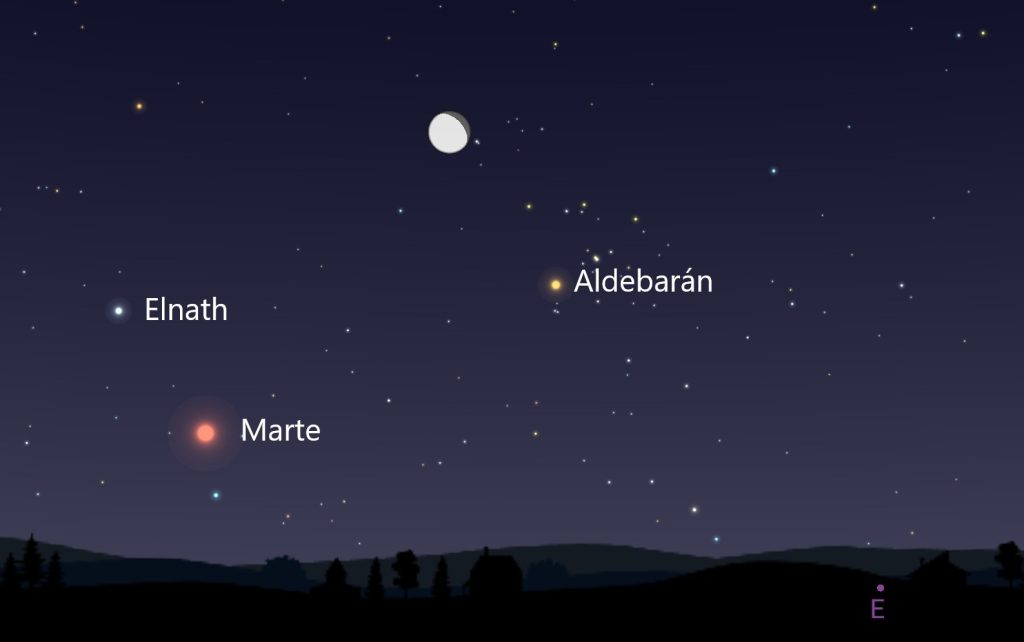 - La Luna estará en conjunción con Marte durante los últimos minutos del día 14 y la madrugada del día 15.