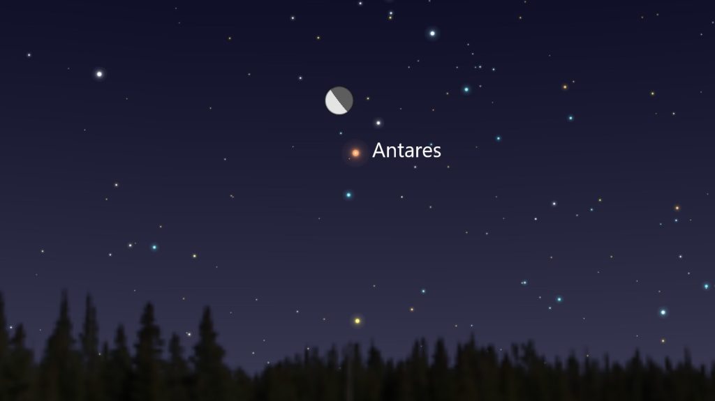 • Antares, la estrella más brillante de la constelación de Escorpio, brillará con magnitud de +1,1.