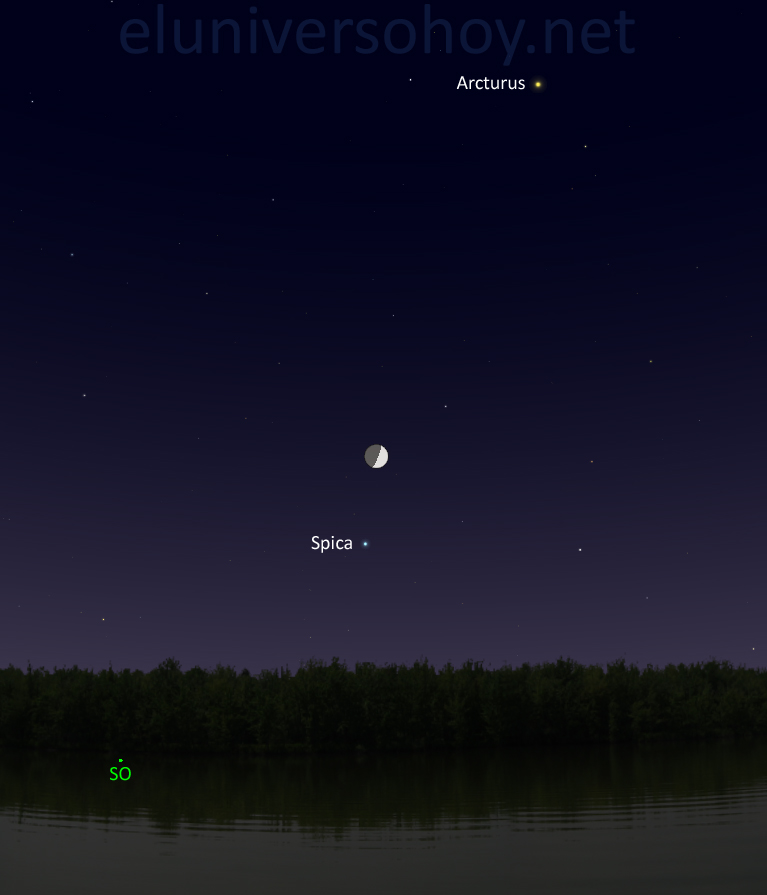 La conjunción de la Luna y la estrella Spica será visible el domingo, 26 de julio de 2020, al anochecer en dirección Suroeste. La aproximación máxima se producirá a las 19:00 UTC. El evento se podrá observar desde cualquier parte del mundo.