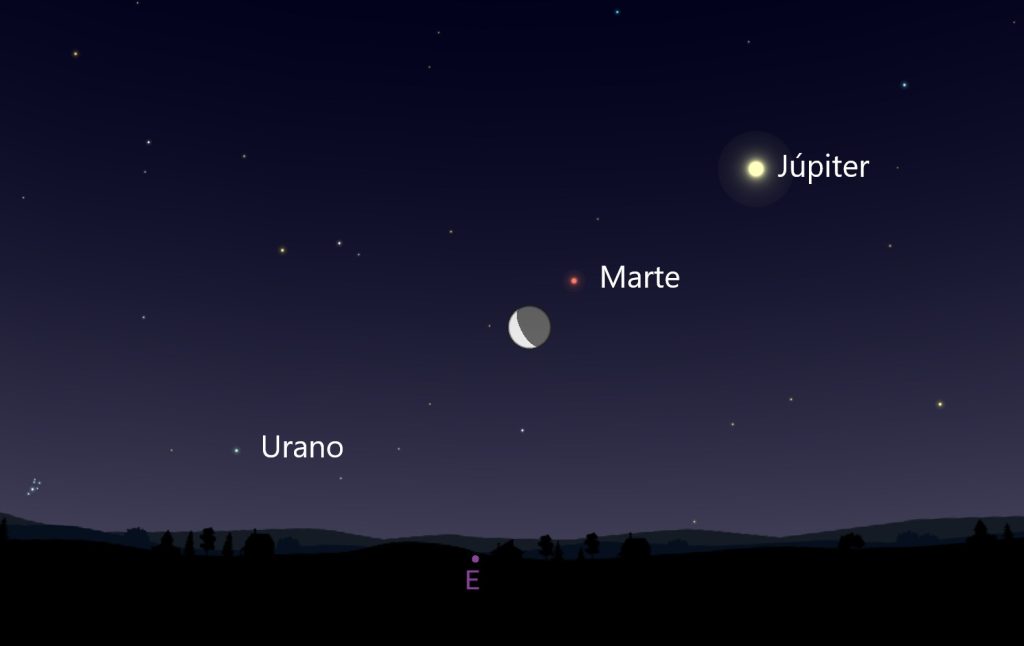 La conjunción de la Luna y Marte será visible antes del amanecer del 23 de junio