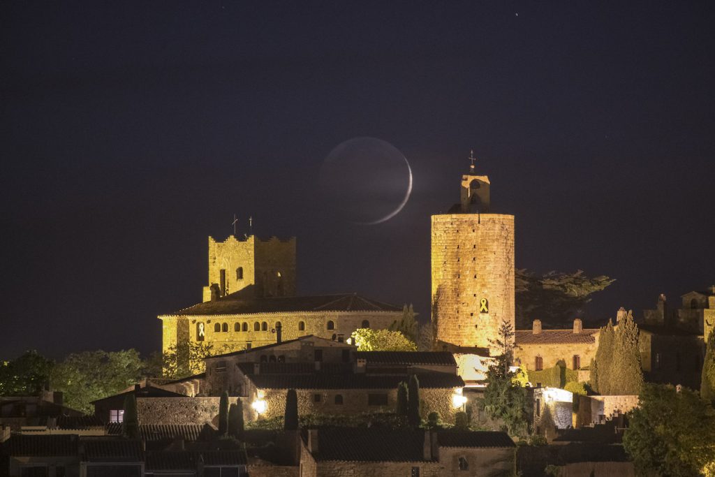 La Luna creciente fotografiada sobre Pals, Girona, España
