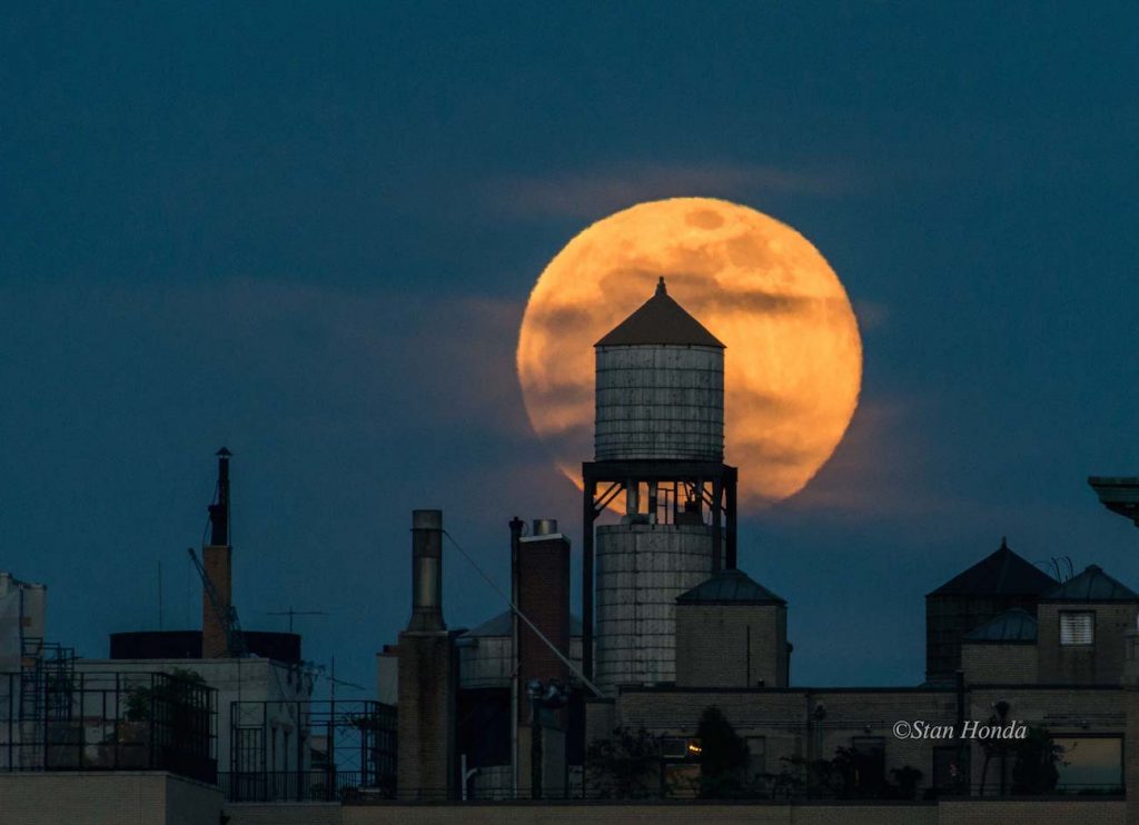 Fotografía de la salida de la Luna llena la noche del miércoles, 10 de mayo de 2017, desde Manhattan en la Ciudad de Nueva York, Estados Unidos. La captura se obtuvo con una cámara Nikon D800 y un objetivo Nikon (200-500mm). Tiene 800 de ISO y un tiempo de exposición de 1/60 segundos.