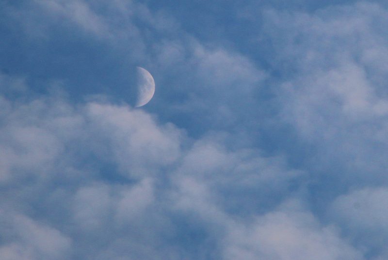 Fotografía de la Luna tomada la tarde del lunes, 28 de agosto de 2017, desde Arenys de Munt (Barcelona, España). La Luna alcanzará la fase Cuarto Creciente durante las primeras horas del 29 de agosto. Esta fotografía fue tomada con una cámara Canon EOS 70D; tiene 1/100 segundos de tiempo de exposición y 200 de ISO (f/13,0).