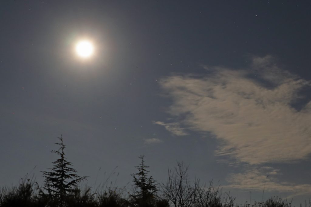 La primera foto muestra a la Luna y una nube iridiscente a las 20:22 (hora local). Tiene un tiempo de exposición de 0,4 segundos, f/4 de apertura y 800 de ISO.