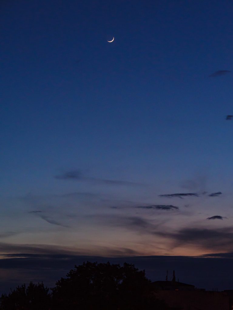 Fotografías tomadas el sábado, 25 de abril de 2020, desde la ciudad de Zaragoza (España). La primera foto muestra a la Luna, Aldebarán y Venus; la segunda y tercera foto muestra a la Luna creciente.