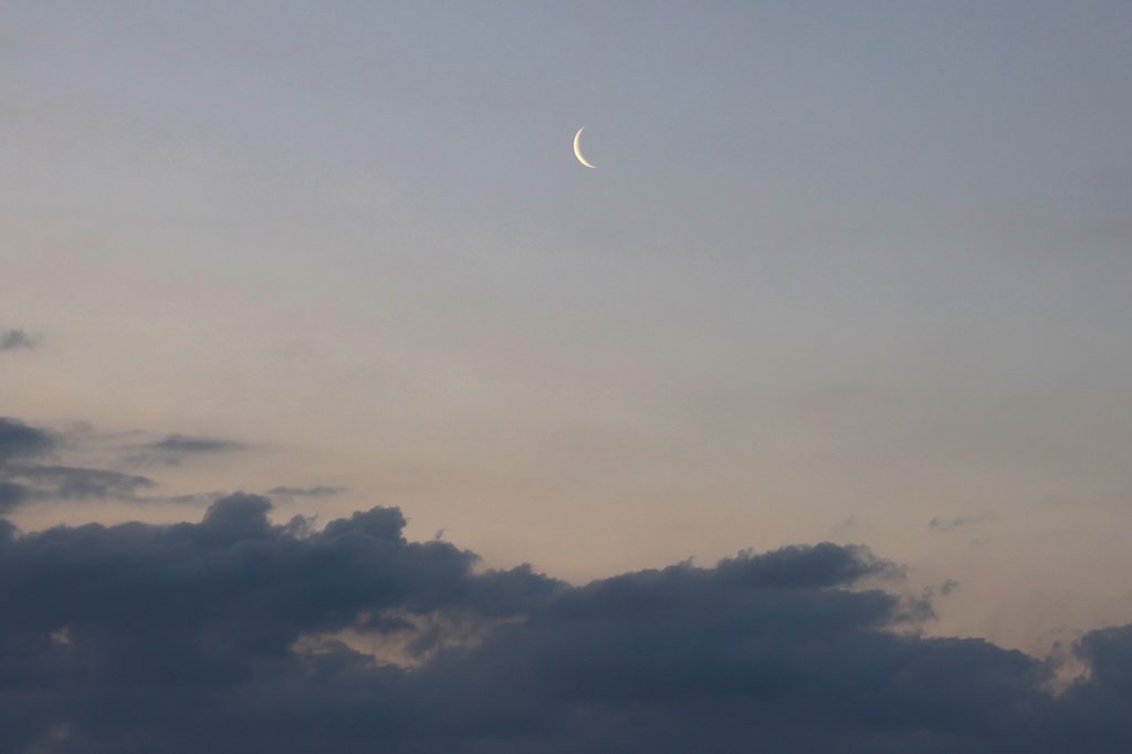 Fotografía de la Luna menguante tomada a las 06:39 (hora local) de este miércoles, 1 de mayo de 2019, desde Arenys de Munt (provincia de Barcelona, España). Se utilizó una cámara Canon EOS R a 400 de ISO, 1/80 de segundo de tiempo de exposición y f/8 de apertura.