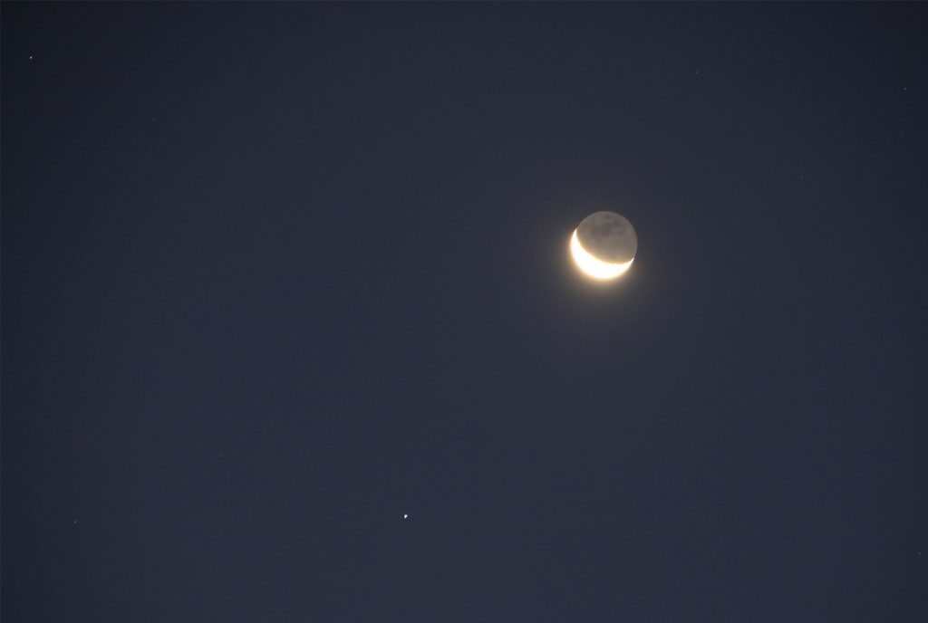 Fotografía de la conjunción de la Luna y la estrella Regulus tomada antes del amanecer del domingo, 15 de octubre de 2017, desde Arenys de Munt (Barcelona, España). La imagen fue obtenida a las 07:27 (hora local) con una cámara Canon EOS 70D; tiene 1,3 segundos de tiempo de exposición y 800 de ISO.