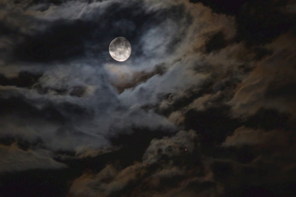 La Luna y Saturno entre las nubes desde Sajonia, Alemania