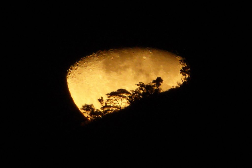 Imagen de la puesta de la Luna gibosa creciente, captada la noche del domingo, 3 de mayo de 2020, desde Mutare (Zimbabue). La captura fue obtenida con una cámara Panasonic Lumix DMC-TZ60 a 1/120 de segundo de tiempo de exposición y 100 de ISO.