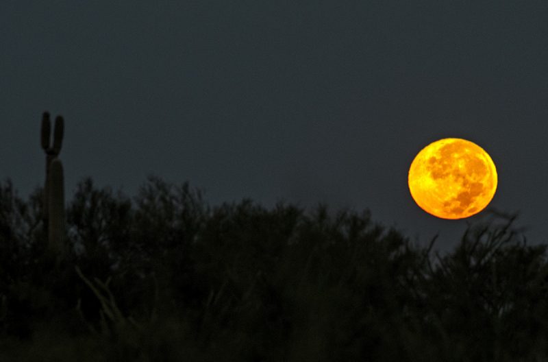 Fotografía de la puesta de la Luna tomada la madrugada de este domingo, 30 de agosto de 2015, en Tucson Arizona. Las puestas de la Luna también pueden provocar este tipo de colores cuando está cerca del horizonte. La fotografía fue tomada con una cámara NIKON D810, 1/15 de tiempo de exposición y 1250 de ISO.