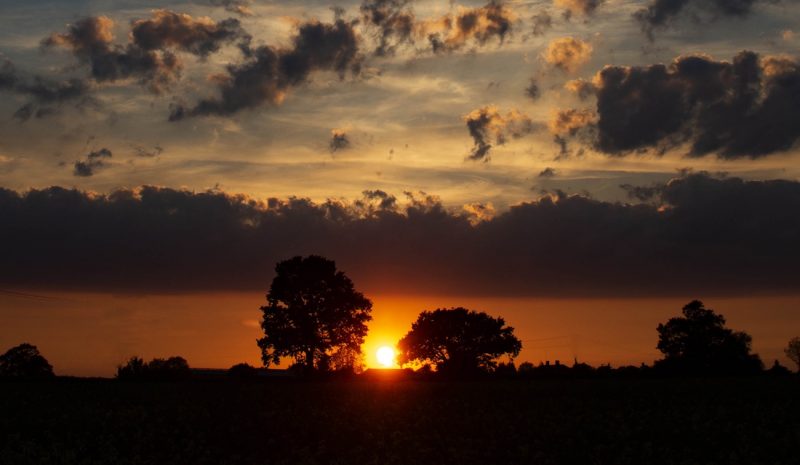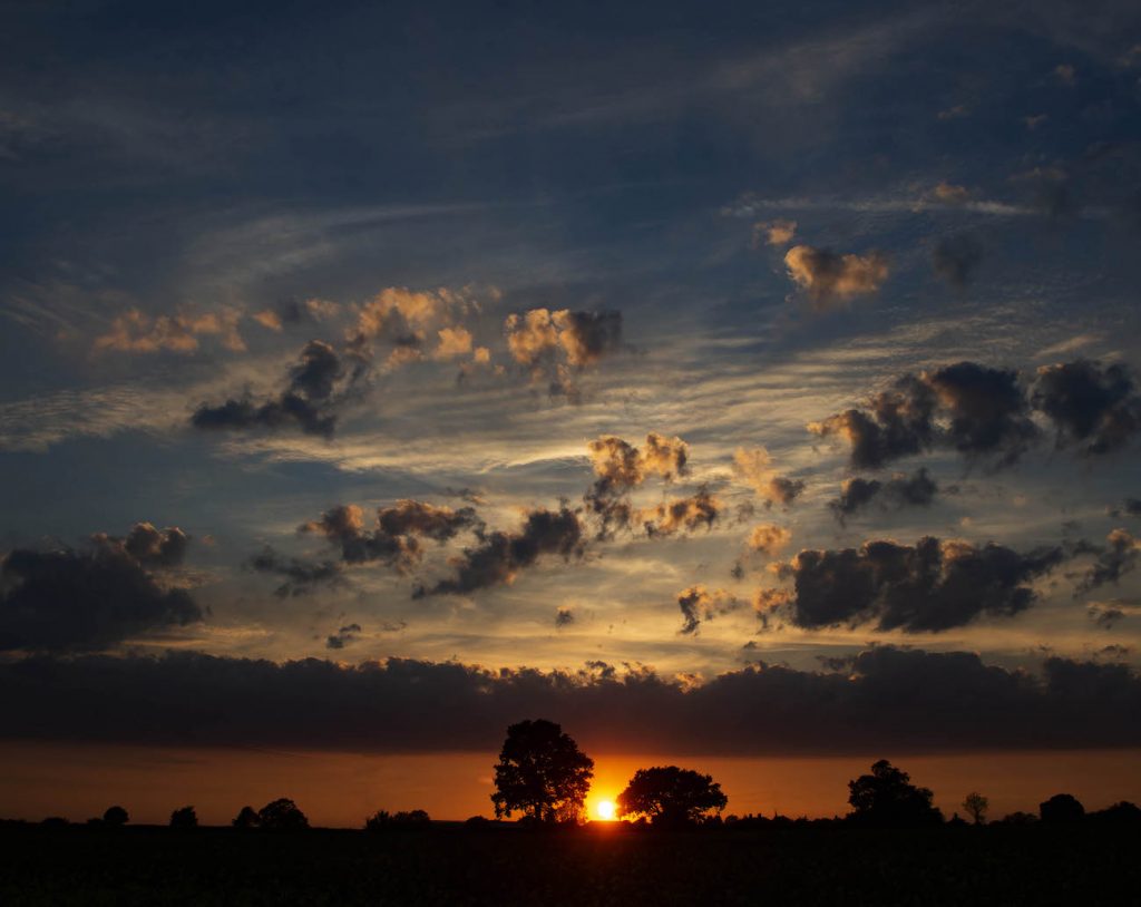 Imagen de la puesta de Sol captada el jueves, 23 de mayo de 2019, desde Harleston, Norfolk, Inglaterra. Se utilizó una cámara Canon EOS 6D a 28mm de distancia focal y f/8 de apertura; el tiempo de exposición es de 1/200 de segundo y 100 de ISO.