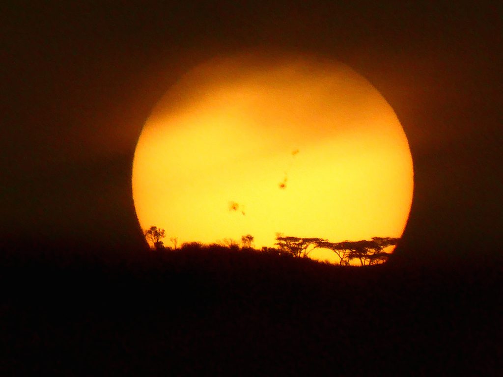 Fotografía del Sol tomada al atardecer del lunes, 4 de septiembre de 2017, desde la ciudad de Mutare, Zimbabue. En la imagen se pueden apreciar las regiones activas 2673 y 2674. Se utilizó una cámara Panasonic Lumix DMC-TZ60. La captura tiene 160 de ISO y un tiempo de exposición de 1/2000.
