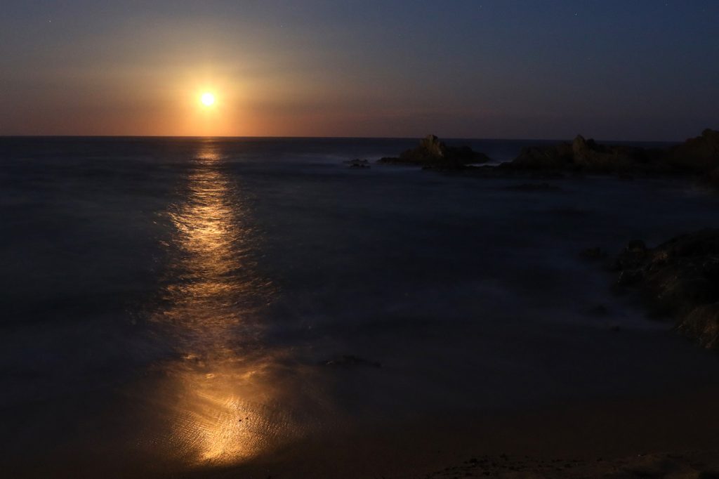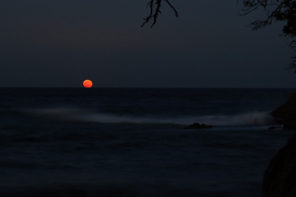 La salida de la Luna fotografiada desde Lloret de Mar, Girona (España)