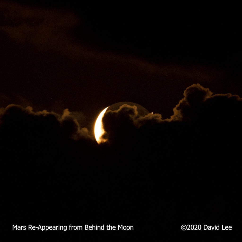 La foto se tomó instantes después de la ocultación de Marte por la Luna, usando una cámara Nikon Z6; tiene 1 segundo de tiempo de exposición, 2500 de ISO y f/5.6 de apertura.