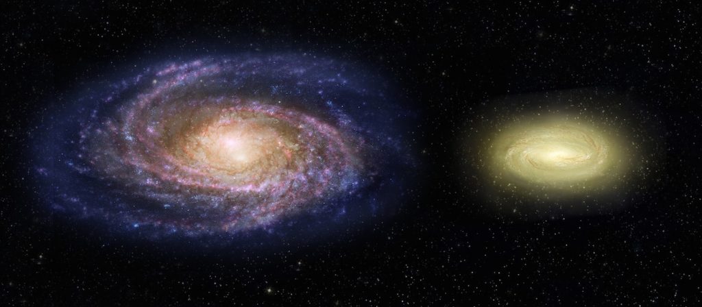 MACS2129-1, una galaxia más pequeña que la Vía Láctea pero tres veces más masiva