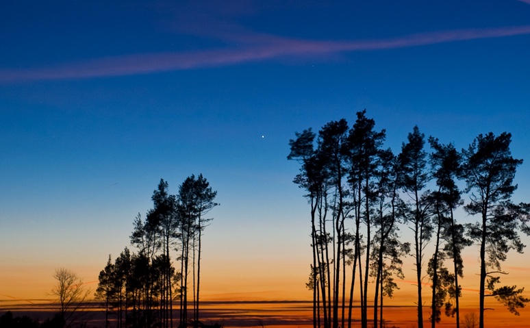 Esta imagen, tomada al atardecer del martes, 26 de febrero de 2019, muestra al planeta Mercurio horas antes de su máxima elongación. La foto se tomó desde Szubin, Polonia, con una cámara Canon EOS 6D; el tiempo de exposición es de 1,3 segundos y 320 de ISO.