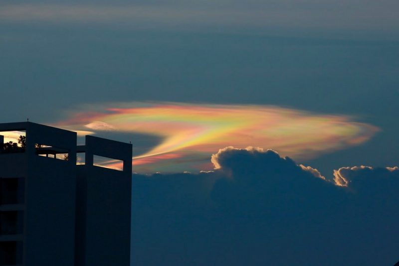 Excelente imagen de nubes iridiscentes captadas sobre la ciudad de Taos en el estado de Nuevo México, Estados Unidos. Se usó una cámara Sony ILCE-6000 a 126mm de distancia focal; tiene 100 de ISO y 1/640 de segundo de tiempo de exposición.