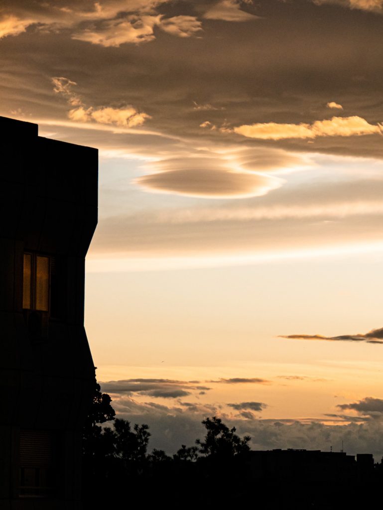 Nubes lenticulares fotografiadas al atardecer en Zaragoza, España