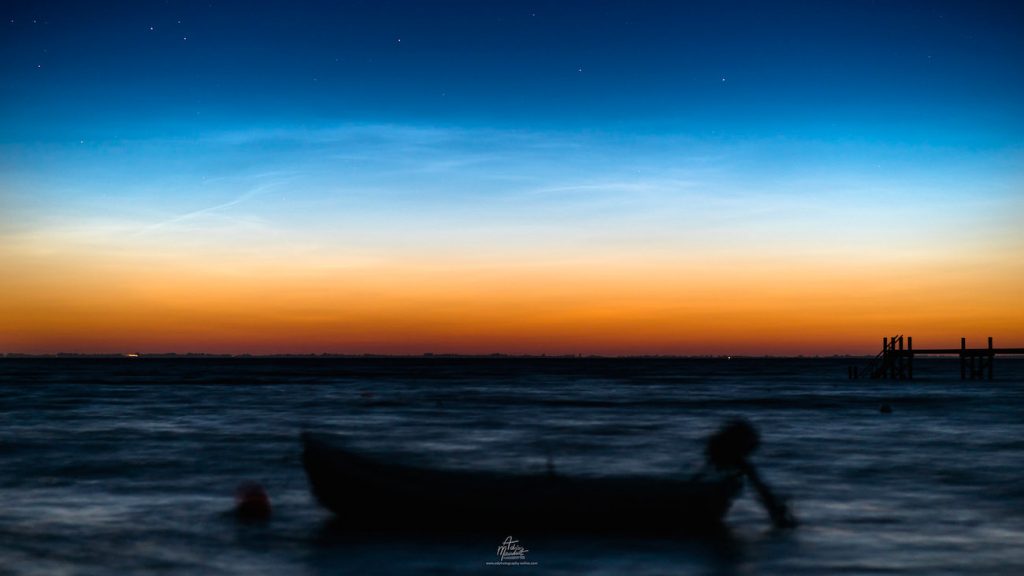 Nubes noctilucentes desde Sjælland, Dinamarca