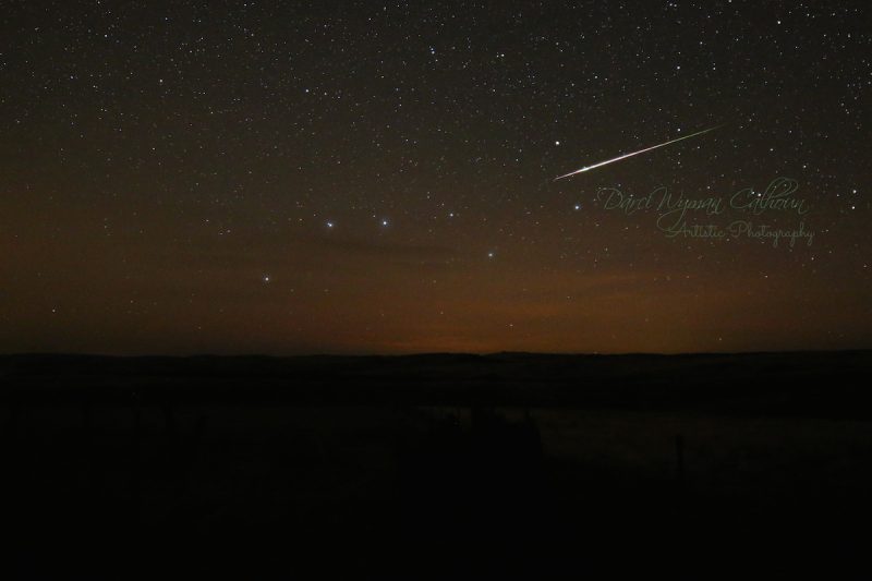 Esta gran fotografía fue captada en Lostine, Estado de Oregón, en el noroeste de Estados Unidos. Se puede apreciar un meteoro brillante cruzando la constelación de la Osa Mayor. La fotografía fue tomada la noche del 9 de octubre de 2015. Se utilizó una cámara Canon EOS 70D, con 30 segundos de exposición y 4000 de ISO.