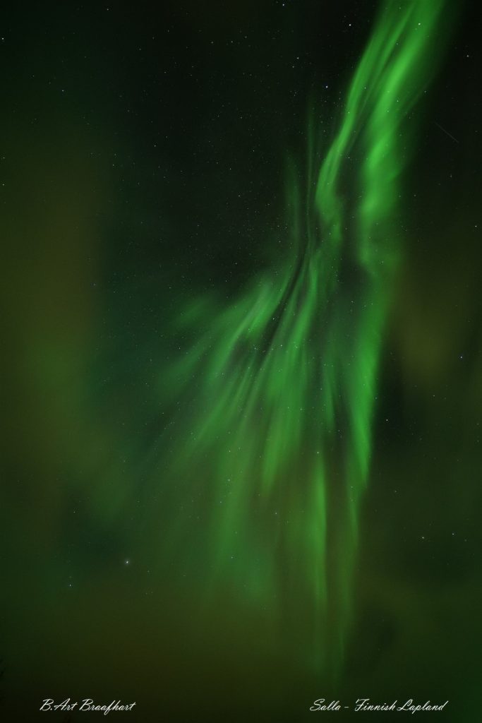 Esta imagen muestra una corona de auroras boreales captada sobre Salla (Laponia finlandesa), la madrugada del sábado, 16 de septiembre de 2017. La fotografía se obtuvo con una cámara Sony ILCA-77M2; tiene 10 segundos de tiempo de exposición y 2500 de ISO.