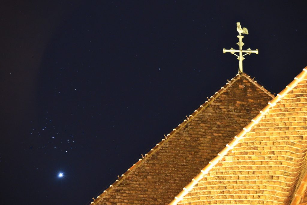 Fotografía del planeta Venus y las Pléyades tomada la noche del jueves, 2 de abril de 2020, desde Perchtoldsdorf (Austria). La captura tiene 2,5 segundos de tiempo de exposición, 2500 de ISO y f/5.6 de apertura. Se usó una cámara Nikon D750.