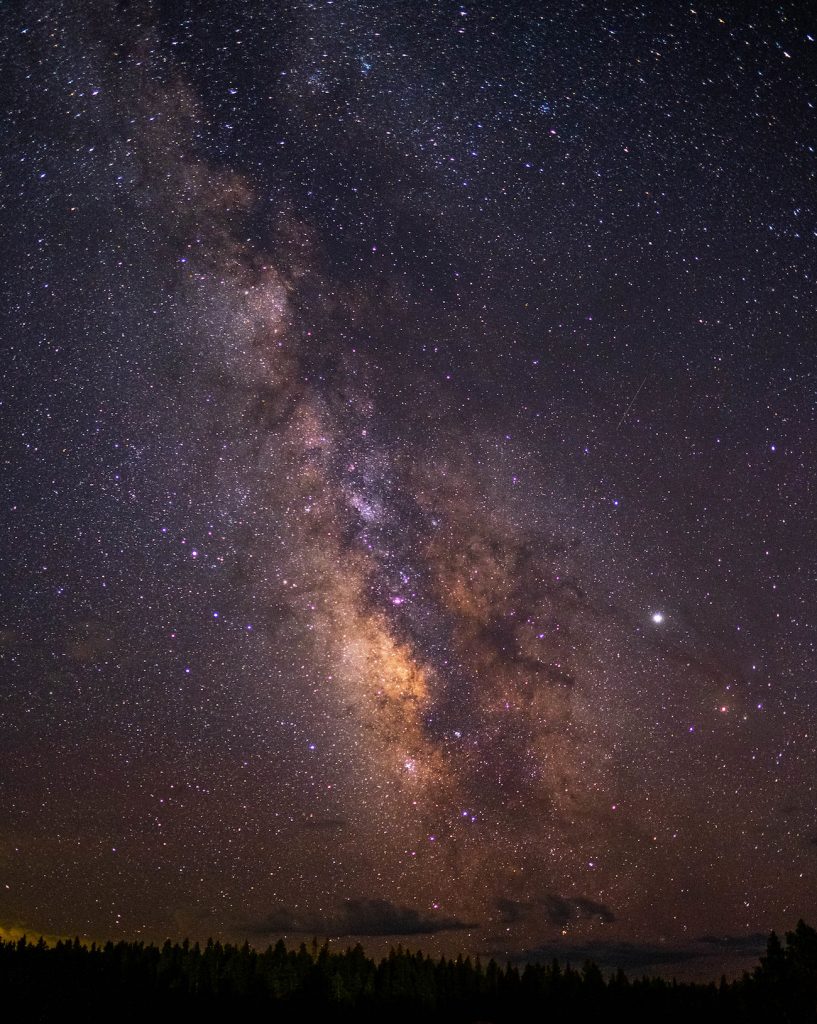 Imagen de la Vía Láctea obtenida la noche del miércoles, 21 de agosto de 2019, desde Leadville en el estado de Colorado, Estados Unidos. Júpiter y Antares son visibles a la derecha de la Vía Láctea; la imagen es una sola exposición de 15 segundos y 1600 de ISO; se utilizó una cámara Fujifilm X-T3 a 16mm de distancia focal y f/1,6 de apertura.
