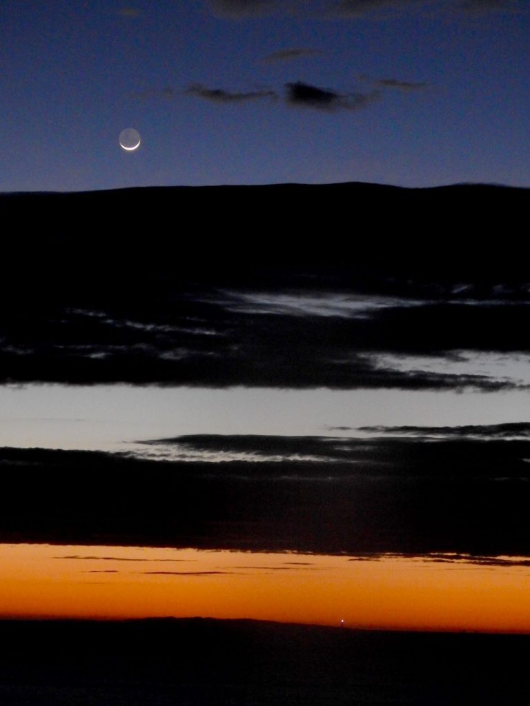 Esta imagen muestra a la Luna menguante sobre la isla de Gabo en Mallacoota, Victoria, Australia. Fue captada al amanecer del lunes, 10 de mayo de 2021, con una cámara Nikon CoolPix P900. Tiene un tiempo de exposición de 0,3 segundos, 800 de ISO y f/4.5 de apertura (21mm de distancia focal).